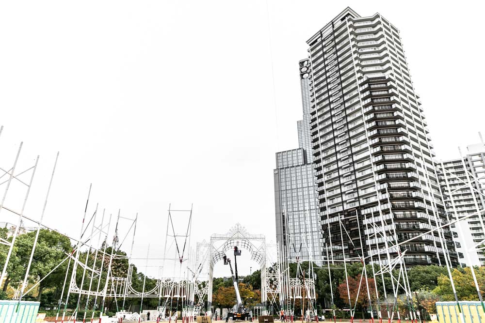 公園に行くと、ルミナリエの準備風景。季節は巡ります。