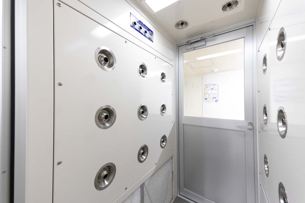 午前中は巨大な加工場で、カメラマンも僕もクリーンウェアを着て、エアシャワーを浴び、作業工程を撮影。