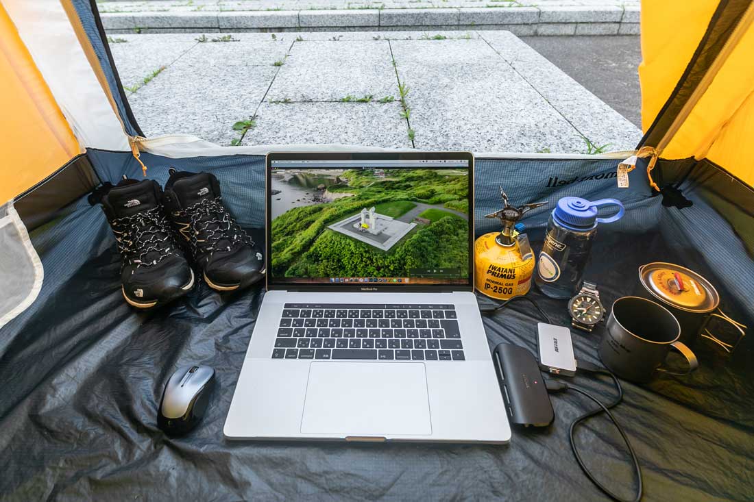 明け方からポツポツと雨が降り出し、テントから朝の光が入ってくる頃には本降り。雨が止むまでしばらくで待機。 フェムトストーブでお湯を沸かし、インスタントのコーヒーと、バッグから、セイコーマートのちくわパンを取り出して朝食。...
