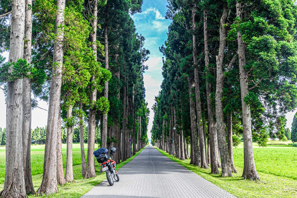 北海道北斗市に到着。「北斗」という地名に、僕のような少年ジャンプの黄金期世代にとっては、テンションが上がります。 そして、このトラピスト修道院へと続く並木道。この日は空いていて、誰もいない真っ直ぐな道を走るのは最高の気分...