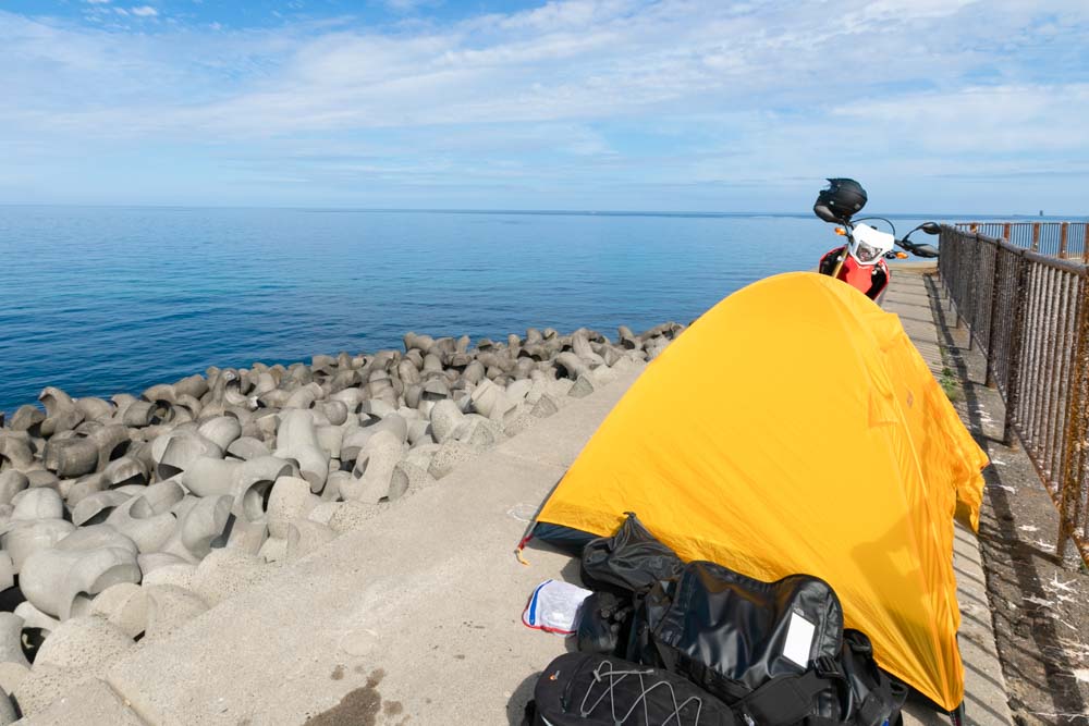 テントの中で迎える朝は、太陽の日差しとともに目を覚まします。 ファスナーを開けると、目の前には青い海が広がっていました。いつもこの瞬間が好きです。 115フェムトストーブで湯を沸かしてコーヒーを入れ、昨晩にセイコーマート...