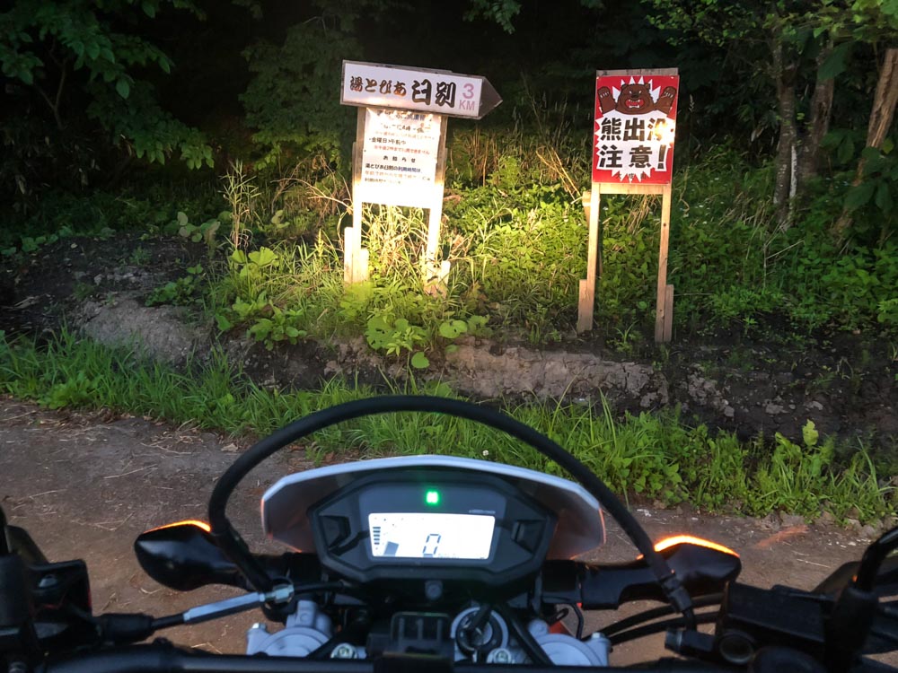 せたな町に入り、雷電国道、229号線を走っていると、温泉の看板が見えたので向かうことにしました。 時間は夕方の17時すぎ。周囲はすでに暗くなりはじめていました。林道約3キロ、途中にガレ場があり、オフロードバイクなら問題な...