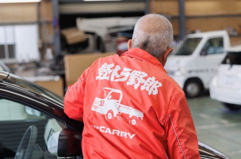 今日は和歌山市にある川永スズキ販売様のウェブサイト撮影です。「軽トラ野郎」と書かれたジャンバーをベテランのサービススタッフが着ると絵になります!!